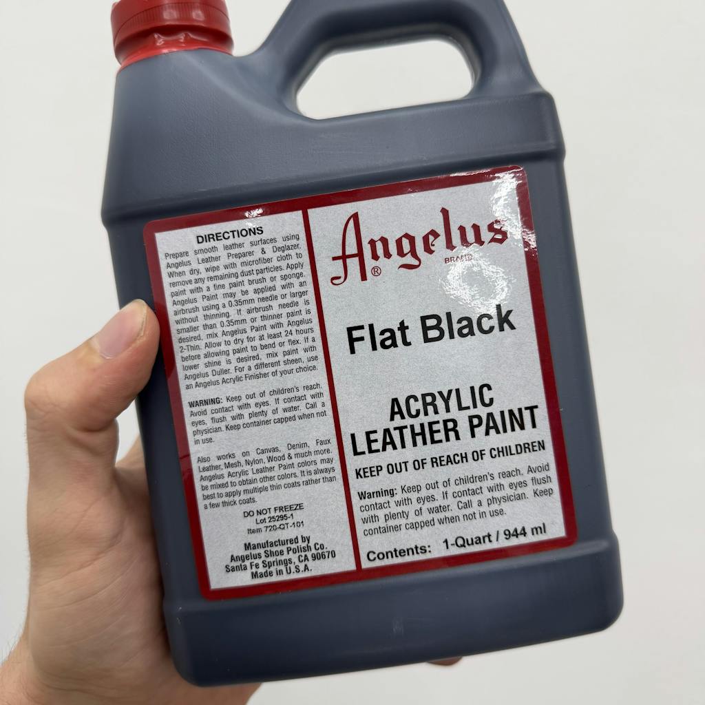 Great quality paint with deep, rich black color. Applies smoothly, covers evenly, and dries to a clean matte finish. Very durable after proper preparation and sealing, no cracking or peeling. Perfect for leather sneakers and restoration projects. Large quart size is very convenient for frequent use. Highly recommend for both beginners and professionals.